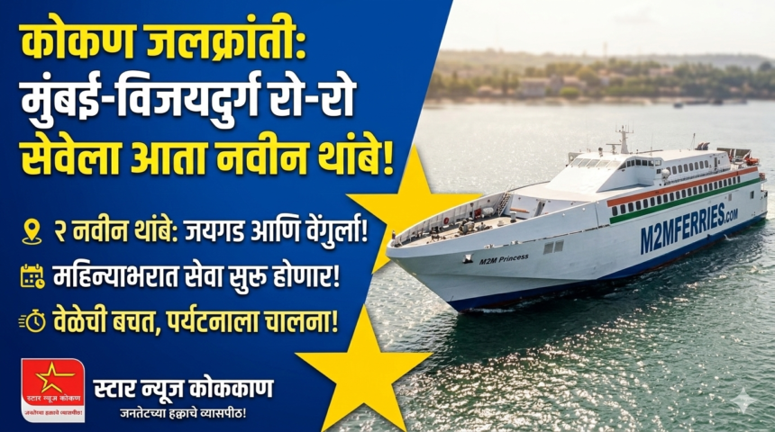 कोकणच्या किनारपट्टीवरील प्रवासाला आता अधिक वेग आणि ग्लॅमर मिळणार आहे. मुंबई ते विजयदुर्ग दरम्यान सुरू झालेल्या रो-रो सेवेचा विस्तार करण्यात येत असून, आता रत्नागिरीतील जयगड आणि सिंधुदुर्गातील वेंगुर्ला हे दोन नवीन थांबे या मार्गावर जोडले जाणार आहेत. मत्स्य व बंदरे विकास मंत्री नितेश राणे यांनी या महत्त्वपूर्ण निर्णयाची घोषणा केली आहे.