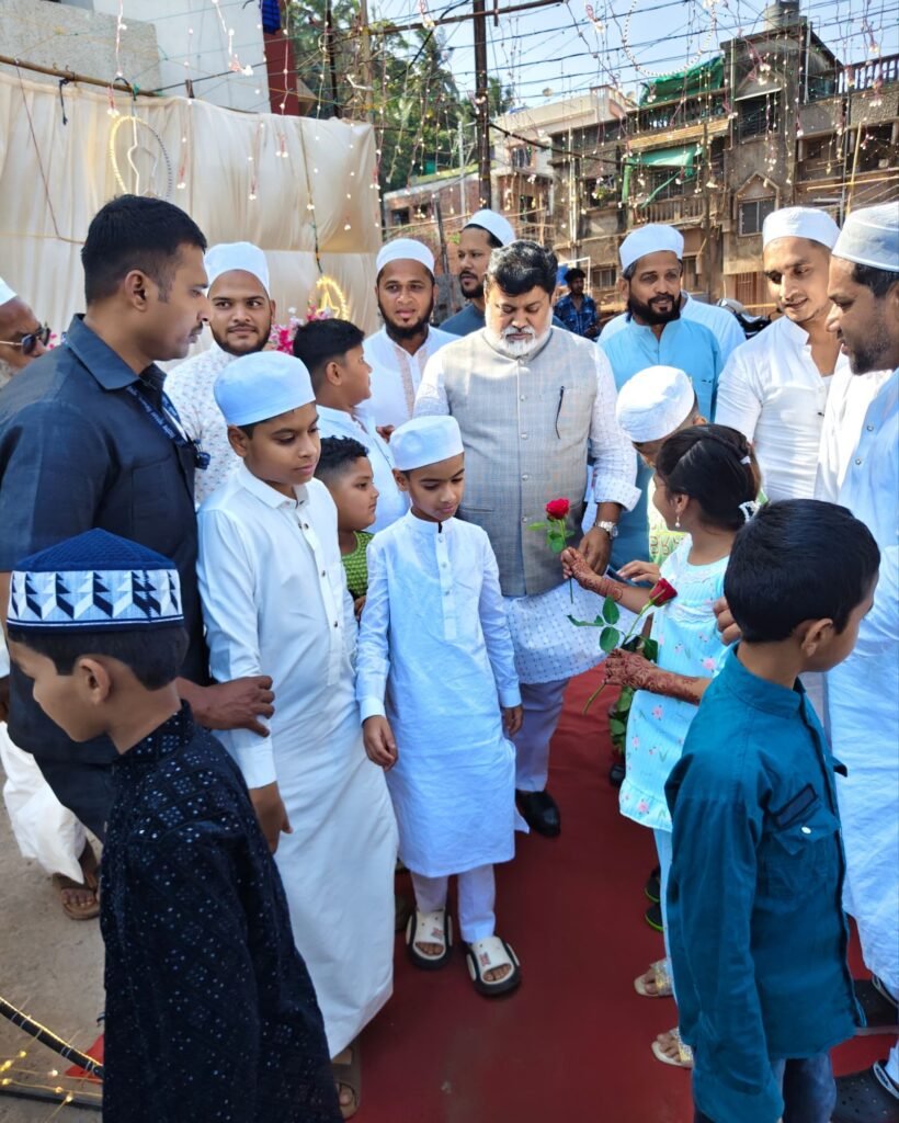 उत्सवाचा रंग तेव्हा अधिकच गडद झाला जेव्हा राज्याचे उद्योगमंत्री नामदार उदय सामंत यांनी प्रत्यक्ष मिरकरवाड्यात हजेरी लावली. त्यांनी मुस्लीम बांधवांची आपुलकीने विचारपूस केली आणि त्यांना ईदच्या मनःपूर्वक शुभेच्छा दिल्या. “हा सण केवळ आनंदाचा नसून तो सामाजिक ऐक्य आणि प्रेमाचे प्रतीक आहे,” अशा भावना यावेळी व्यक्त झाल्या. नामदारांच्या या भेटीने हिंदू-मुस्लिम बांधवांच्या मनातील स्नेह अधिक दृढ झाल्याचे दिसून आले.