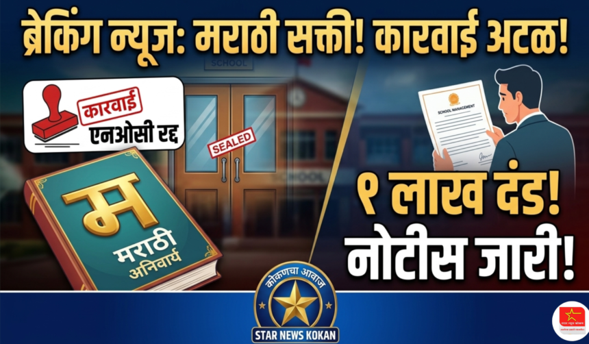 शालेय शिक्षण व क्रीडा विभागाने १७ एप्रिल २०२६ रोजी यासंदर्भात अत्यंत महत्त्वाचा शासन निर्णय (GR) निर्गमित केला आहे. सर्व शाळांना आता मराठी विषयासाठी विहित शैक्षणिक अर्हता प्राप्त शिक्षकांची नेमणूक करणे बंधनकारक असेल. शाळा सुरू झाल्यापासून दोन महिन्यांच्या आत मराठी भाषेच्या अंमलबजावणीची तपासणी शिक्षण उपसंचालकांकडून केली जाईल. नियमांचे उल्लंघन करणाऱ्या शाळांना प्रथम नोटीस देऊन १५ दिवसांत खुलासा मागितला जाईल. समाधानकारक उत्तर न मिळाल्यास, शाळा व्यवस्थापनावर १ लाख रुपयांपर्यंत दंड आकारला जाईल. दंड भरूनही सुधारणा न झाल्यास, संबंधित शाळेची मान्यता किंवा ना-हरकत प्रमाणपत्र (NOC) रद्द करण्याची कारवाई केली जाईल.