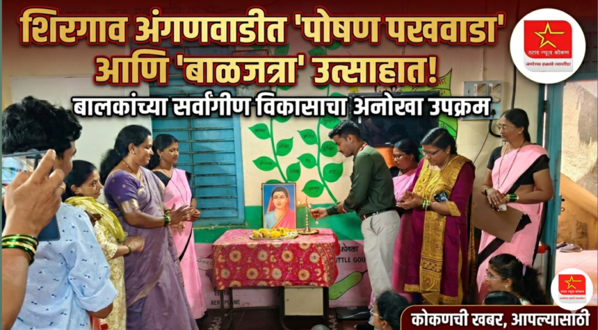 एकात्मिक बालविकास सेवा योजना प्रकल्प, रत्नागिरी-१ अंतर्गत कोतवडे-१ बिटमधील शिरगाव ग्रामपंचायत कार्यक्षेत्रात आज सामूहिक ‘पोषण पखवाडा’ आणि ‘बाळजत्रा’ कार्यक्रमाचे उत्साहात आयोजन करण्यात आले. शिरगाव गांजुर्डा अंगणवाडीत पार पडलेल्या या कार्यक्रमात बालकांच्या आरोग्य आणि पोषण आहारविषयक जनजागृती करण्यात आली.